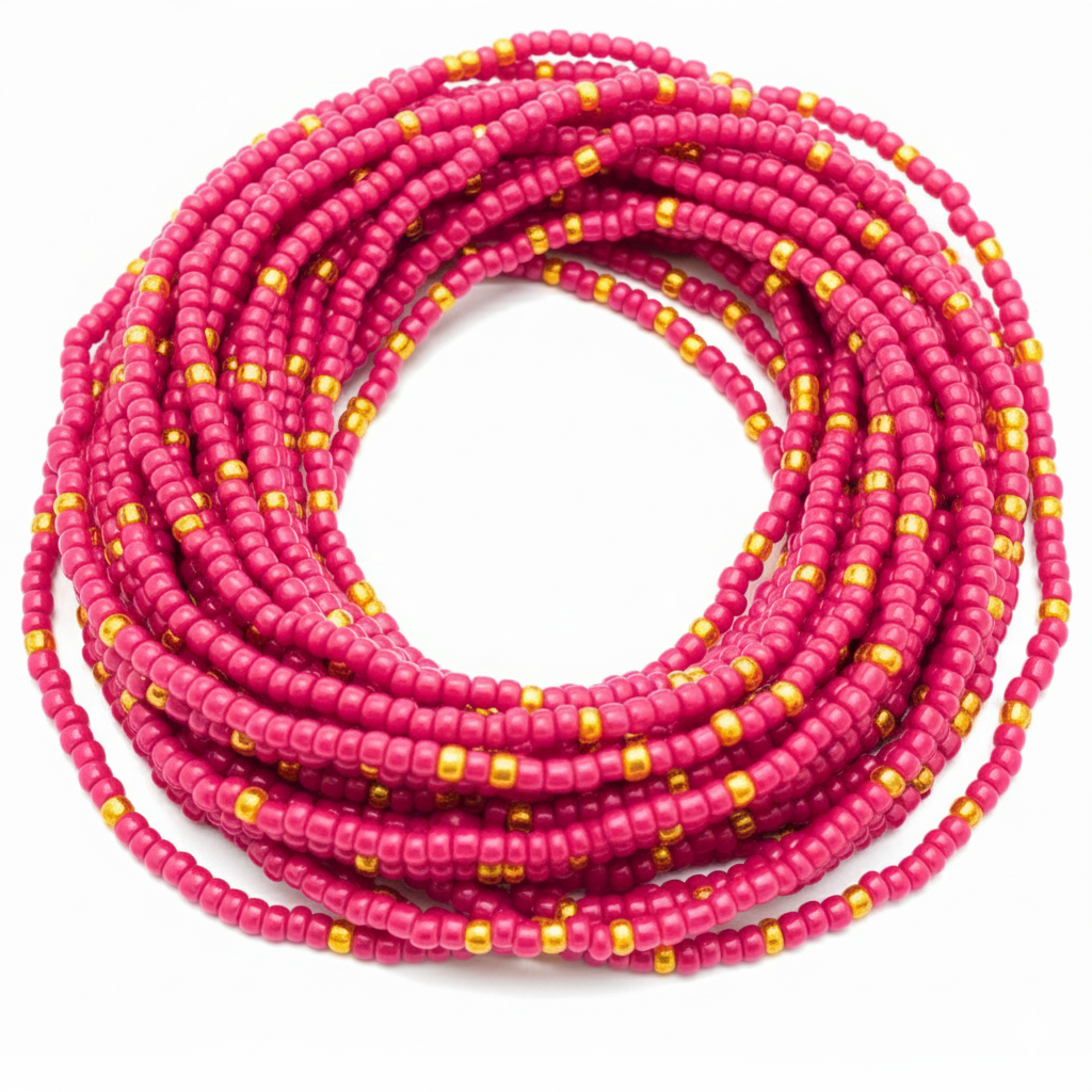 Hot Pink and Gold Waist Beads  Available in stretch or barrel clasp styles, they’re comfortable, durable, and easy to stack or wear solo. Perfect for daily wear or special occasions.