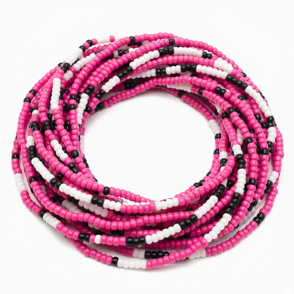 These Hot Pink, Black & White Waist Beads bring together playful pink, bold black, and clean white for a striking, modern look. Whether you wear them to express confidence, style, or personal energy, they make a statement.