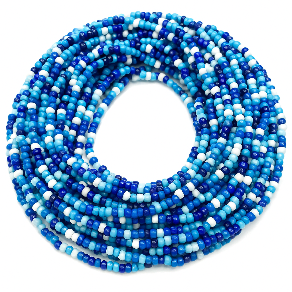 Blue Mix Waist Beads with 8/0 seed beads . Available in stretch or barrel clasp style. Bold, sleek, and radiant.