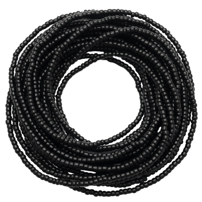 All-black waist beads in stretch or clasp style. Sleek, grounding, and perfect for layering or daily wear.